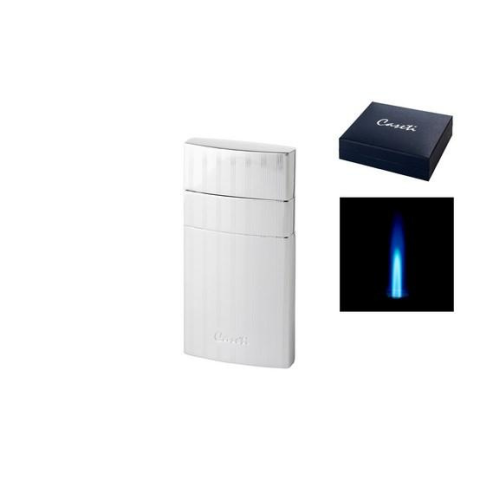 Króm színű elegáns Caseti szivargyújtó erős Jet lánggal és króm díszítéssel, csíkos mintával. A klasszikus Caseti Nizza szivar öngyújtó újra tölthető öngyújtó gázzal, szállítás egy dekoratív díszdobozban. A szúró lánggal még szeles időben is könnyen meg tudjuk gyújtani vele a kedvenc szivarunkat.Mint ajándék is tökéletes egy szivarosnak.Méretek: 71 x 37 x 12mmSúly: 91 gramm