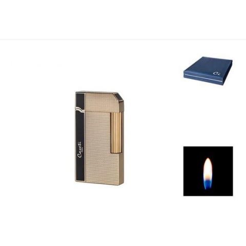 Elegáns tűzköves szivargyújtó Caseti Roma apró négyzet mintás arany/fekete színű. Az öngyújtó oldalsó lánggal ég és az alján tölthető öngyújtó gázzal. A fém ház oldala fekete színre van lakkozva Caseti Paris felirattal, a tűzkő természetesen cserélhető - pótolható. A Caseti minőség már a díszdobozon is vissza köszön ránk az öngyújtó egy bársony tokban pihenve várja az új szivaros barátját.Méretek: 65 x 35 x 11 mm Súly: 81 Gramm