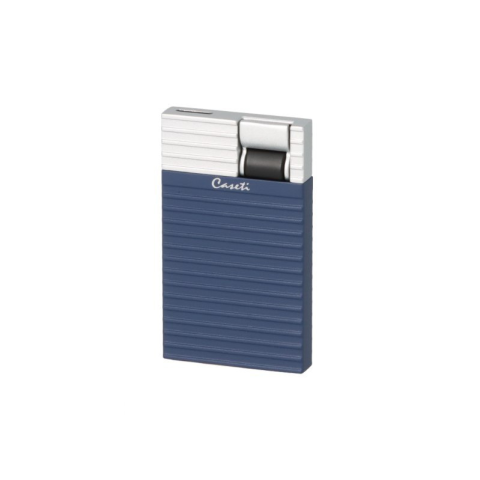 Caseti szivargyújtó széles Jet lánggal, matt sötétkék és króm színű, elején a Caseti logoval ellátva. Az öngyújtó alján tudjuk állítani a láng méretet, bármilyen hagyományos utántöltő gázzal tölthető, a hátulján látható a gáz töltöttségi szintje. A vízszintesen dombornyomott vonalak igazán jó fogást biztosítanak kezünkben.Szállítás bársonytokban és díszdobozban.Méretek: 6,5 x 3,8 x 0,8 cmSúly: 59 gramm