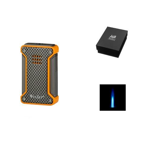 1-es szúró lánggal égő, carbon és narancs színű WinJet szivargyújtó. Az öngyújtó alján tudjuk állítani a láng méretét. Az öngyújtó bármilyen hagyományos utántöltő gázzal tölthető. Nagyon jól eltalált forma a meg szokott Winjet minőségben elérhető áron.Szállítás díszdobozban.