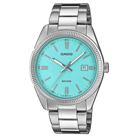 1 kép Casio Casio MTP-1302PD-2A2 férfi karóra, türkiz számlap, acél szíj, WR50