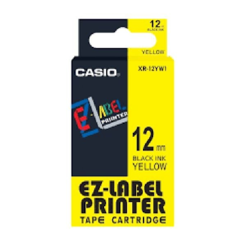 Casio Cimkéző, feliratozó szalag, 12 mm, sárga, XR 12 YW1