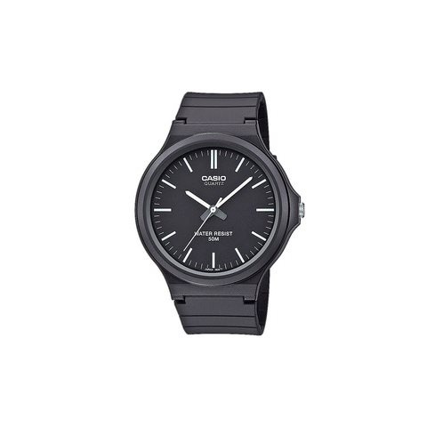 Karóra férfiaknak - analóg idő megjelenítés, óramű típusa quartz, kerek számlap, Casio Collection sorozat, sportos, számozás nélküli, műanyag számlap, 50 m (5 ATM) vízhatlanság, a tok anyaga szintetikus gyanta, a tok színe fekete, a szíj anyaga műanyag, a szíj színe fekete A klassz CASIO COLLECTION MW-240-1EVEF férfiaknak karóra remek választás a mindennapkora. Az alapját egy 43,6 mm széles kerek számlap alkotja. A Quartz óraszerkezet pontos időmérést és hossz