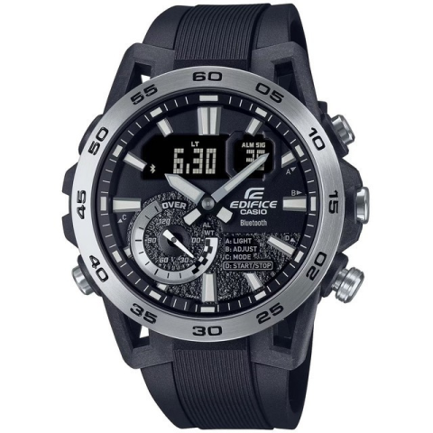 Gyártó: Casio, Kollekció: Edifice Bluetooth Sospensione, Típus: Férfi karóra, Szín: Fekete, Anyag: Műanyag, Vízállóság: 10 bar, Óraszerkezet: Kvarc, Kijelző típusa: , Óratok alakja: Kerek, Óratok mérete: 48 mm
