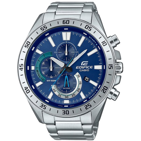 Karóra férfiaknak - analóg idő megjelenítés, óramű típusa quartz, kerek számlap, dátum és stopper, Casio Edifice sorozat, elegáns, arab indexek, ásványi számlap, 100 m (10 ATM) vízhatlanság, a tok anyaga acél, a tok színe ezüst, a szíj anyaga acél, a szíj színe ezüst A kiváló minőségű CASIO EDIFICE EFV-620D-2AVUEF férfiaknak karóra alkalmas mindennapi viseletre. Az alapját egy 50,5 mm széles kerek számlap alkotja. A hatékony Quartz technológia rendkívüli m