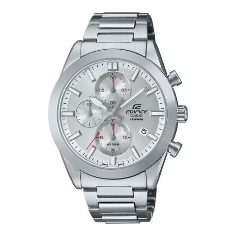 Gyártó: Casio, Kollekció: Edifice, Típus: Férfi karóra, Szín: Ezüst, Anyag: Nemesacél, Vízállóság: 10 bar, Óraszerkezet: Kvarc, Kijelző típusa: Analóg, Óratok alakja: Kerek, Óratok mérete: 41 mm