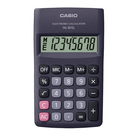 Casio HL-815 zsebszámológép 8dig. - 8 számjegyes kijelző - memória - százalékszámítás - gyökvonás - mérete: 115x 66,5x 17,5 mm - 1 db AA elemmel működik (tartozék)