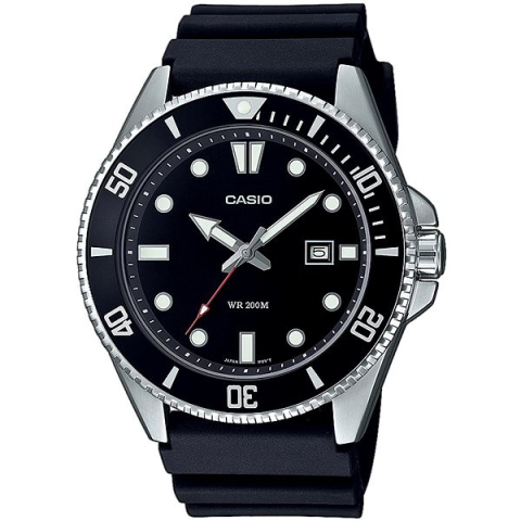 Karóra férfiaknak - analóg idő megjelenítés, óramű típusa quartz, kerek számlap, dátum és fordulatszám mérő, elegáns, arab indexek, ásványi számlap, 200 m (20 ATM) vízhatlanság, a tok anyaga acél, a tok színe ezüst, a szíj anyaga műanyag, a szíj színe fekete A klassz CASIO MDV-107-1A1VEF férfiaknak karóra jó szolgálatot tesz a mindennapokban. Az alapját egy 44,2 mm-es kerek számlap alkotja. A Quartz óraszerkezet hosszú élettartamot és precíz időmérést bi