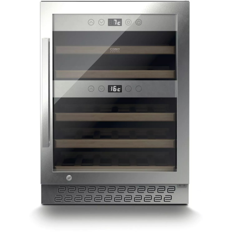 Professzionális borhűtő két hőmérsékleti zónával és intelligens vezérléssel. A CASO borhűtő lehetővé teszi a hőmérséklet kényelmes beállítását és a hibák azonnali jelzését a CASO WineControl alkalmazáson keresztül. A két különálló zóna elektronikus beállítása 5-20 °C között történik, mindkettő aktív ventilátorral a pontos hőmérséklet biztosítására.