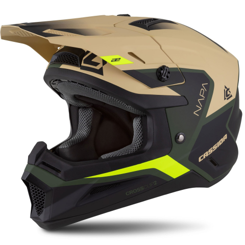 CASSIDA Cross Cup 2 Napa motokrossz bukósisak matt homokos-zöld-fluo sárga-fekete