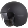 Motoros sisak - robogóhoz, polikarbonát héj, ECE 22.06 homologizáció, integrált napellenző, kivehető és mosható belső, levehető arcpárna, interkom előkészítés, mikrometrikus csat, tömege 1230 g (± 50 g), fekete, mérete M, matt felületkezelés, retro design Helma na motorku CASSIDA je nutnou součástí výbavy motorkáře a při nehodě absorbuje sílu nárazu, čímž pomáhá ochránit hlavu před vážným poraněním. Otevřené řešení kryje pouze vrchní část hlavy
