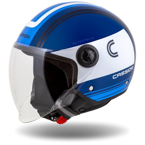 Robogó bukósisak - anyaga: polikarbonát , homologizáció: ECE 22.06, plexi: UV-szűrős, kivehető belső, interkom csatlakozó, Mikrometrikus csat, tömege 1150 g (± 50 g), szín: kék, méret: M A remek CASSIDA robogó sisak ideális választás robogózáshoz a város körül és az autópályán is. A robogó bukósisak gyártási anyaga polikarbonát. Kényelmet és maximális biztonságot nyújt minden vezető s