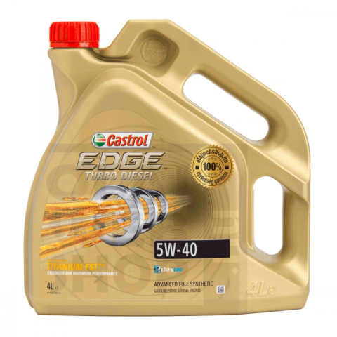 5W-40 motorolaj A Castrol EDGE Turbo Diesel 5W-40 egy prémium minőségű, teljesen szintetikus motorolaj, amelyet kifejezetten a modern, nagy teljesítményű, turbófeltöltős dízelmotorokhoz fejlesztettek ki. Az olaj a Castrol szabadalmaztatott Fluid TITANI
