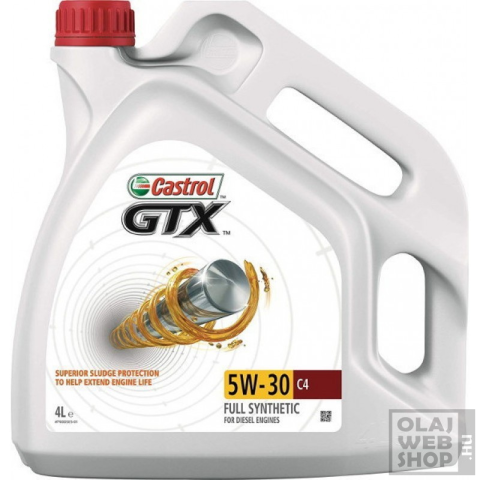 5W-30 motorolaj A Castrol GTX C4 5W-30 egy prémium minőségű, teljesen szintetikus motorolaj, amelyet a modern, dízel részecskeszűrővel (DPF) felszerelt motorokhoz fejlesztettek ki. Az olaj a Castrol egyedülálló Sludge Protection (iszapvédelem) technoló