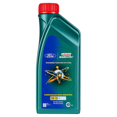 5W-30 motorolaj A Castrol Magnatec Ford A5 5W-30 egy részben szintetikus motorolaj, amelyet kifejezetten a Ford motorokhoz fejlesztettek ki. A termék a Castrol egyedülálló Intelligens Molekulák technológiáját használja, amely folyamatos védelmet nyújt