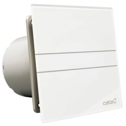 Cata E-120G ventilátor üveg előlappal, fehér A Cata E-GLASS szellőztető ventilátorok formatervezett kialakításának nem csak esztétikai, hanem áramlástechnikai szerepe is van. A hasonló teljesítményű, hagyományos kialakítással rendelkező társaihoz képes