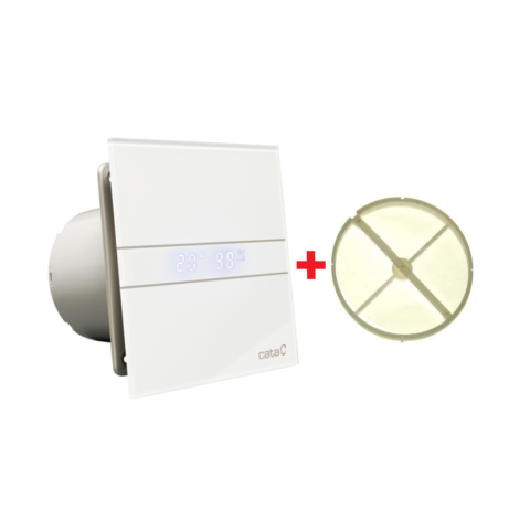 CATA E-120GTH időzítővel és páraérzékelővel visszacsapó szeleppelA Cata E-GLASS szellőztető ventilátorok formatervezett kialakításának nem csak esztétikai, hanem áramlástechnikai szerepe is van. A hasonló teljesítményű, hagyományos kialakítással rendelkező társaihoz képest alacsonyabb zajszint jellemzi.