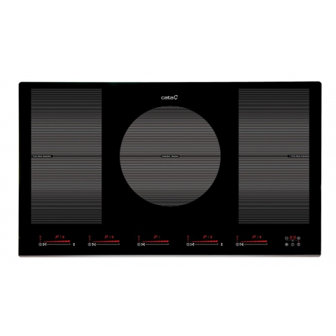 5 Indukciós főzőzóna, Touch Control érintővezérlés, 1 db 300 mm-es, 4 db 210x200 vagy 2 db 210x400 mm-es moduláris indukciós főzőzóna, 3 főzési funkció: olvasztás (45-55ºC), melegítés, melegen tartás (65-70 ºC), forralás (85-95ºC), 9 fokozat, időzítő, gyerekzár, automata kikapcsolás, maradékhő kijelzés, teljesítmény: 9 kW, Quick-Fix System