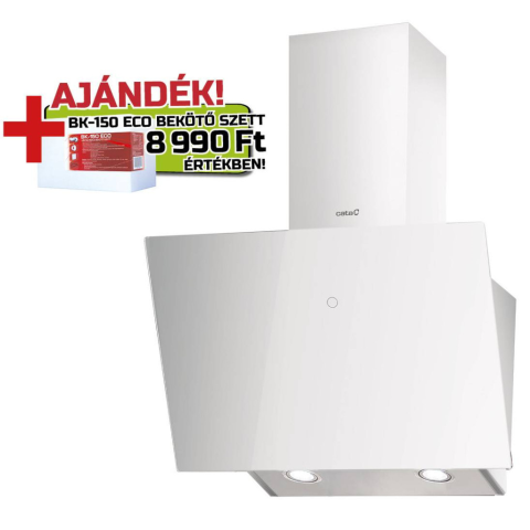 Cata - Páraelszívó LENA 600 XGWH fehér + BK150 ECO bekötő szett Időtlen elegancia és modern technológia A Cata – Páraelszívó LENA 600 XGWH fehér kifinomult döntött kialakításával és fényes fehér üveg felületével stílusos kiegészítője minden konyhának.