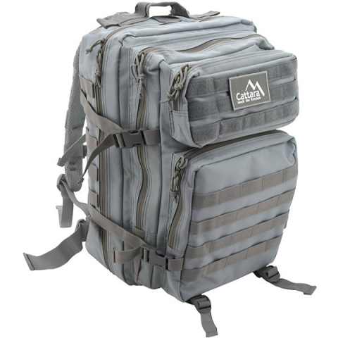 Túrahátizsák 45 l - uniszex, anyaga poliészter, bekapcsolás kétutas cipzárral, csattal, állítható hevederek és párnázott pántok, vízálló kivitel, tömege 1,2 kg, szürke kivitel A tágas, párnázott Cattara 45 l hátizsák 2 fő, 2 mellék és 5 belső zsebbel rendelkezik, amelyek közül az egyik cipzárral zárható. A hátsó rész tépőzáras szellőző zsebbel van ellátva. A hátizsák elülső