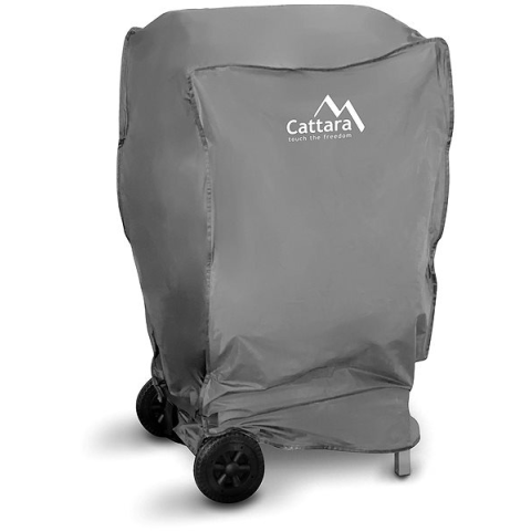 Grill takaróponyva Cattara - vízhatlan, puha belső réteg, rögzítése tépőzárral, anyaga poliészter, mérete 62 × 57 × 96 cm (H×Sz×Ma), szürke kivitel, tömege 400 g A tartós, 100% poliészterből készült takaróponyvát úgy tervezték, hogy használaton kívül megvédje a grillt az időjárás viszontagságaitól. Belső oldala puha réteggel van bevonva, amely kíméletes a fede