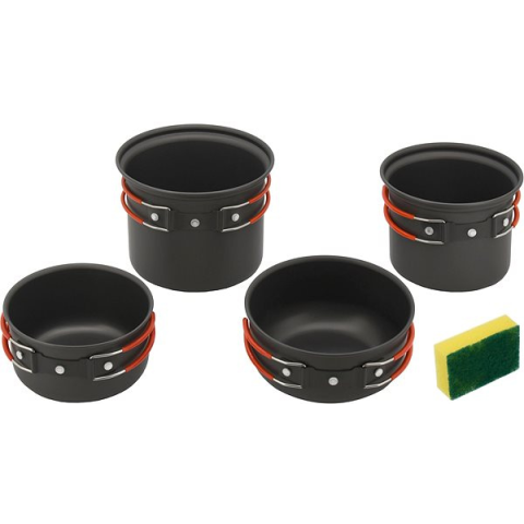 Kemping edény - anyaga eloxált alumínium, 6 darabos készlet, készlet tartalma serpenyő, edény, tál, lábas és szivacs, Legyen a főzés kényelmes és praktikus akár sátorban, akár lakókocsiban kempingezel! A Cattara COOK edénykészlet minden igényt kielégít, és minden elvárásodnak garantáltan megfelel. Ez a készlet