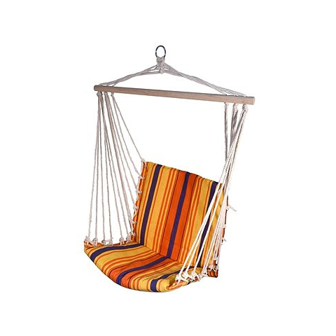 Függőszék - felakasztható, kültéri, brazil konstrukció, akasztólyuk kampóra akasztáshoz, kötelek a csomag része, konstrukció anyaga fa, ülés/támla anyaga textil, terhelhetősége 115 kg, piros és narancssárga kivitel, kárpit a csomagban, mérete 50 × 45 cm (Sz×H), tömege 1,82 kg Kényeztesse magát pihenéssel a nagy Cattaro függőszéken! A függőfotel puha párnázott ülése és a fából készült tartóléc maximális kényelmet és a stabilitást biztosít. A kül