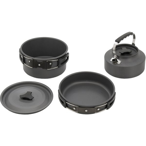 Kemping edény - anyaga eloxált alumínium, 3 darabos készlet, készlet tartalma serpenyő, edény és lábas, nem éles fémeszközzel is használható Szeretsz túrázni és kempingezni, és praktikus felszerelésre van szükséged? Akkor ez a nagyszerű Cattara TRIPLE edénykészlet garantáltan elnyeri majd a tetszésed. Ezzel a remek készlettel elkészítheted