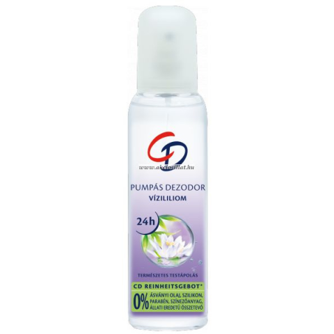 CD vízililiom pumpás dezodor rendelés A természetes vízililiom-kivonatot tartalmazó CD pumpás dezodor hosszan tartó frissességet biztosít. Bőrgyógyászatilag tesztelt Érzékeny bőrtípusra Nem hagy fehér foltot Nem tartalmaz alumíniumsó Női pumpás dezo
