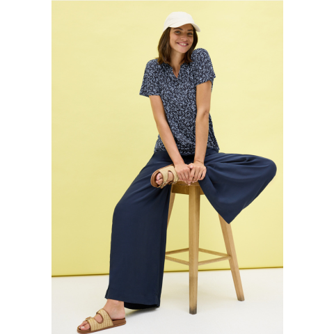 Termék leírás: Cecil női blúz - fekete-fehér nyomott mintával, V-nyakkivágás 323696-36831. Színe: kék Ez a Cecil márkájú női blúz ideális viselet a munkahelyi vagy hétköznapi alkalmakra. A fekete-fehér nyomott minta elegáns megjelenést biztosít, míg a V-nyakkivágás modern és vonzó stílust képvisel. Könnyen párosítható farmerral vagy szoknyával.Fedezze fel a Cecil legújabb női blúz kollekcióját. Elegáns fekete-fehér nyomott mintás blúz, amely tökélet