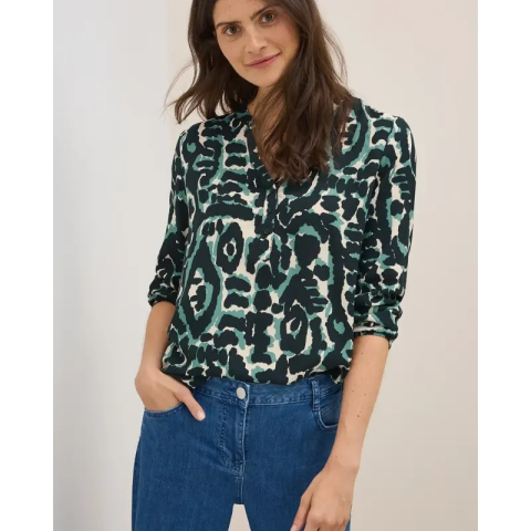 Termék leírás: Cecil női blúz - jeges tónusú, levél mintázattal, gombos elülső 345986-36834. Színe: sötétzöld Ez a Cecil jeges zöld árnyalatú blúz levél mintázattal tökéletes választás a hétköznapi, munkahelyi és divatos megjelenést preferáló hölgyek számára. A gombos elülső rész eleganciát kölcsönöz, míg az anyagának puhasága kényelmessé teszi a viseletet.Fedezze fel a Cecil legújabb kollekcióját, és érezze jól magát ebben a stílusos, jeges
