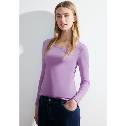 Cecil Női Póló 319820-15565. Színe: sporty lilac Art. Cikkszám: B31982015565Egyszerűen időtlen! A CECIL női hosszú ujjú, Pia stílusú, hosszú ujjú és kerek nyakkivágással ellátott alap női ing a mindennapok elengedhetetlen ruhadarabja. Kombináld kedvenc farmereddel vagy elegáns szoknyával, és adj alkalmi, mégis időtálló jelleget az öltözékednek. A pamut kellemes viseletet biztosít. 319820-15565