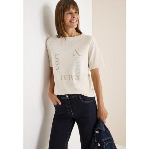 1 kép Cecil női póló, elegáns kivitelű, COZY CALM felirattal, világosszürke színből 324164-37089