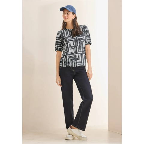 Termék leírás: Cecil női póló TWO TONE PRINTED BURNOUT SHIRT 323116-25512. Színe: sötét kék 323116-25512