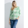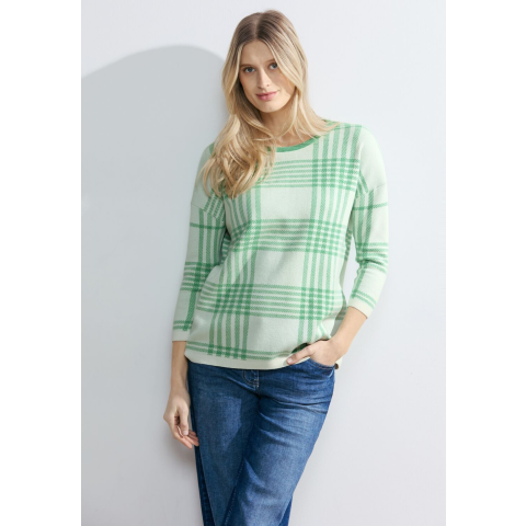 Cecil Női Pulóver 302695-25552. Színe: celery green melange Art. Cikkszám: B30269525552A CECIL női kötött pulóver feltűnő kockás mintájával, kerek nyakkivágásával és bordázott mandzsettájával új kedvenc. Ez a 3/4 ujjú pulóver viszkózkeverékből készült, amely kényelmes viseletet biztosít. Trendi kialakításával stílusos ruhadarab, amely számos alkalomra ideális. 302695-25552