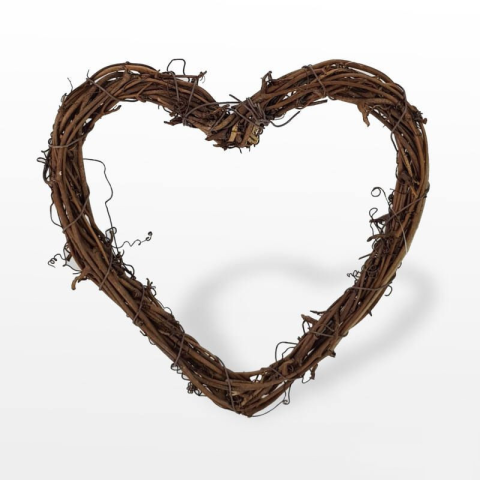 Vesszőből font szív formájú dekor alap, fém vázon és megerősített fém szállal. 20cm x 20mm