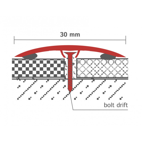 1 kép CELL Burkolatváltó profil szintkülönbség kiegyenlítő 30 mm széles 270 cm hosszú, eloxált alu, 0-6 mm közötti magasságkülönbség esetén, csavarozható és öntapadó csíkkal ragasztható is