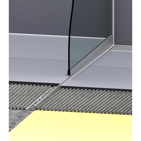 1 kép CELL Épített zuhanykabin oldalszegély ferde ék alakú eloxált profil 2% lejtés bal oldalra