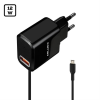 Hálózati töltő – Micro USB és USB A csatlakozóval A hálózati töltőhöz csatlakoztatható bármilyen USB-A kábel, vagy bármely Micro USB csatlakozóval rendelkező eszköz, mely legalább 2 Amper töltőárammal tölthető. A töltő alkalmas telefon, tablet, powerb