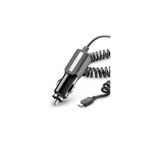 1 kép CELLULARLINE autós töltő (10W + fix microUSB, gyorstöltő, spirálkábel) FEKETE (CBRPHMICROUSB)