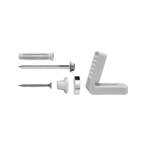 CELO FRH vízszintes WC rögzítő szett - 2 db A készlet tartalma: 1 x FX 8 dübel, ömlesztett 5.000 db 1 x WC-tartó szürke sarokelem, logó nélkül 1 x Védő rész 17x12 1 x Díszkupak 21x5mm 1 x Rozsdamentes acél csavaros rögzítés az 5x45 konzolhoz 1 x