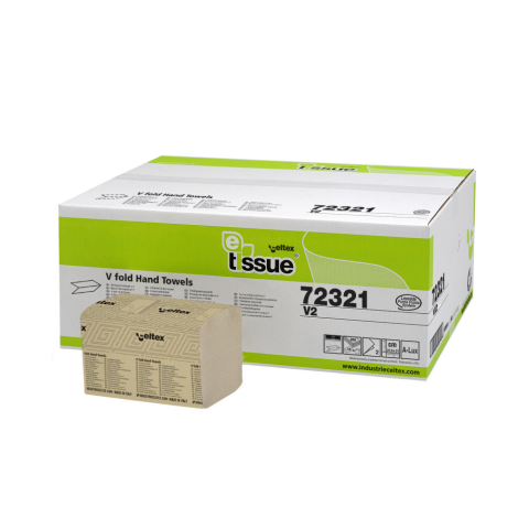 A Celtex Omnia Labor papírtörlők egyaránt használhatók a kéz és az eszközök törlésére. Nagy lapméretének köszönhetően egy lap is elegendő a tisztításhoz. Konyhai és műhelyi felhasználásra egyaránt használható. Celtex E-Tissue V2 hajtogatott kéztörlő -