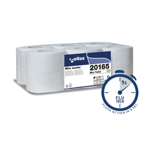 Celtex Mini 19cm 2 rétegű toalettpapír - közületi nagytekercses toalettpapír - cellulóz, - 2 rétegű - 160 méter/tekercs (890 lap) - 19 cm átmérőjű - 12 tekercs/zsugor - 9,2x18cm lapméret - vízben gyorsan oldódó (9 másodperc) - 52 zsugor/raklap