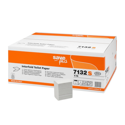 Celtex Save Plus hajtogatott toalettpapír - hajtogatott toalettpapír - recy (újrahasznosított) - 2 rétegű - 75% fehérségű - 11x18 cm / lap - 250 lap / csomag - 36 csomag / karton (9000 lap)