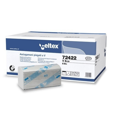 - Celtex V Eco hajtogatott kéztörlő - V hajtogatott kéztörlő papír - recy (újrahasznosított) - fehérített - 2 rétegű - 25x22 cm/lap - 15x210 lap/csomag (3150 lap/karton) - 36karton/raklap