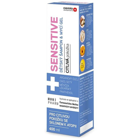 Gyerek sampon - parabénmentes és természetes összetevőjű A CEMIO Sensitive gyermek sampon és tusfürdő gél kifejezetten az érzékeny gyermekbőr ápolására lett kifejlesztve. Egyesíti az argán olaj, a zab, a körömvirág és a panthenol jótékony hatásait, amelyek