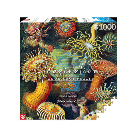 Puzzle Imagination Ernst Haeckel "Sea Anemones" illusztrációja alapján, 1000 darabos. Ernst Haeckel (1834-1919) egy német biológus, evolucionista, művész, filozófus és orvos volt, aki annak szentelte az életét, hogy kutassa a flórát és faunát a legmagasabb hegycsúcsoktól, az óceán legmélyebb pontjáig. Többszáz részletes rajzot, akvarellt és vázlatot készített a megállapításairól, melyeket nagy sikerrel övezve publikált. Haeckel munkái a grafikai precizitásukt