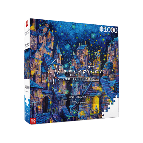 Puzzle Roch Urbaniak "Koncert a kéményen" illusztrációja alapján, 1000 darabos. Roch Urbaniak egyszerre festő és gyermekkönyvíró Krakkóból. A művészetét a mítoszok, tündérmesék, valamint a popkultúra, többek között a videojátékok inspirálták. Mivel inspirációt és figyelemreméltó történeteket bárhol lehet találni, a történeteket a festményeivel akarja elmesélni. Szintén használja a festményeit más médiákban is, így képregényeket is készít, valami