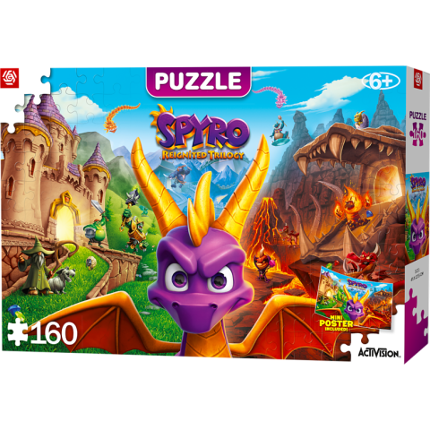 Ez a szett egy jólismert gyerekvideójátékon, a Spyro: Reignited Trilogy-n alapszik, a jellegzetes lila sárkánnyal a főszerepben, amely a példája egy időtlen platform játéknak, melyet mind a felnőttek, mind pedig a gyerekek játszhatnak. Az új puzzle segítségével újra ennek a jószívű kis sárkánynak a világában érezheted magad. A doboz tartalmaz egy miniposztert is. A puzzle jellemzői: Elemek száma: 160 darab Összeállított kép mérete: 41 x 27.5 cm Egy darab átlago