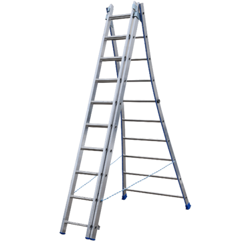 A szintező segít a létra megfelelő szögben történő elhelyezésében. A terpesztett szár nagyobb stabilitást biztosít egyenetlen talajon. Használható támasztó létraként, hagyományos létraként, és akár lépcsőn is. A legfelső tag külön is használható. Csúszásmentes talp. A zsanérok erősített acélból készülnek ami nagyobb tartósságot biztosít, és lehetővé teszi a szint kompenzációt. Biztonsági kampók öntött alumíniumból reteszelővel. Acél megerő